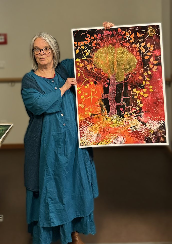 Als ich die ersten veredelten Drucke in den Händen hielt, hat mich ihre Wirkung selbst überrascht. Aus der Distanz entfaltet es eine wunderbare Präsenz. Das Gold fängt das Licht ein und bringt das Motiv auf eine ganz eigene Weise zum Leuchten.