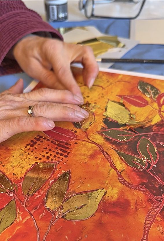 Durch die individuell von Hand aufgearbeiteten Blattgoldpartien entsteht bei jedem Exemplar eine eigene Lebendigkeit – kleine Unterschiede, die jedes Blatt zu etwas Eigenständigem machen.