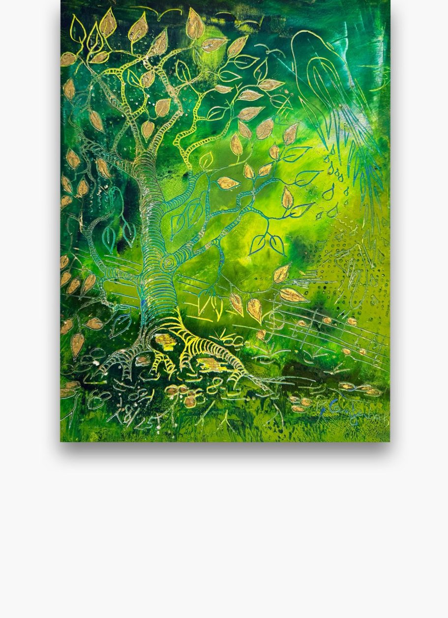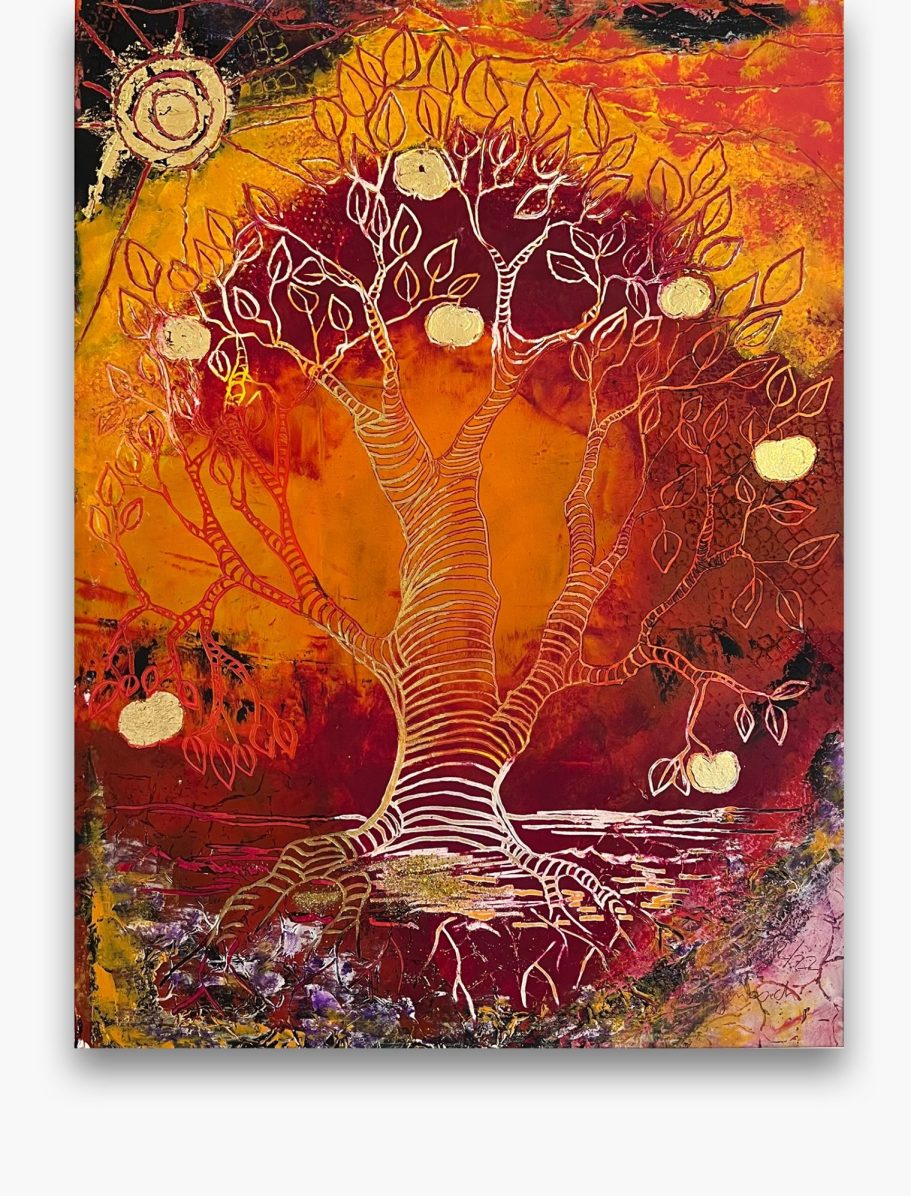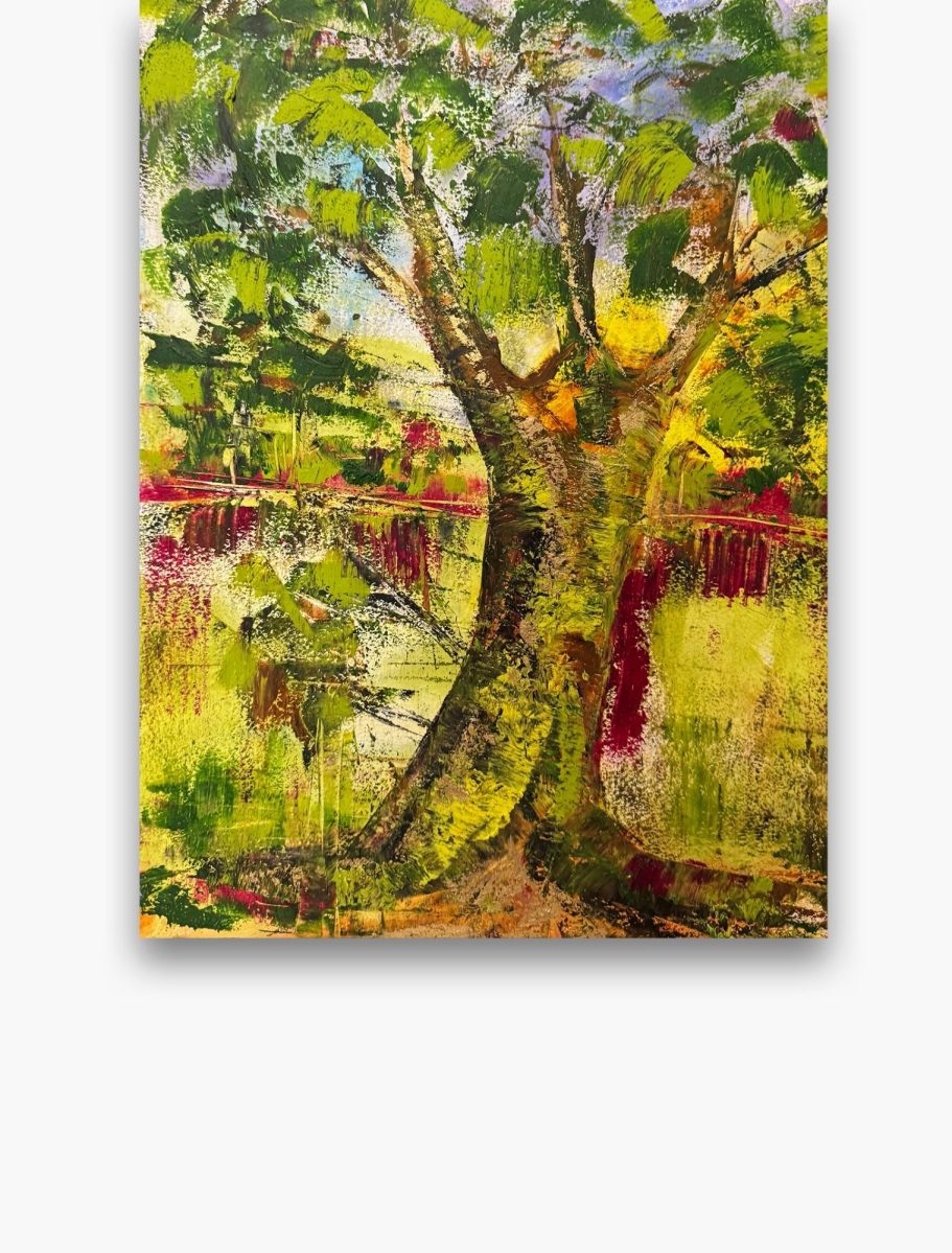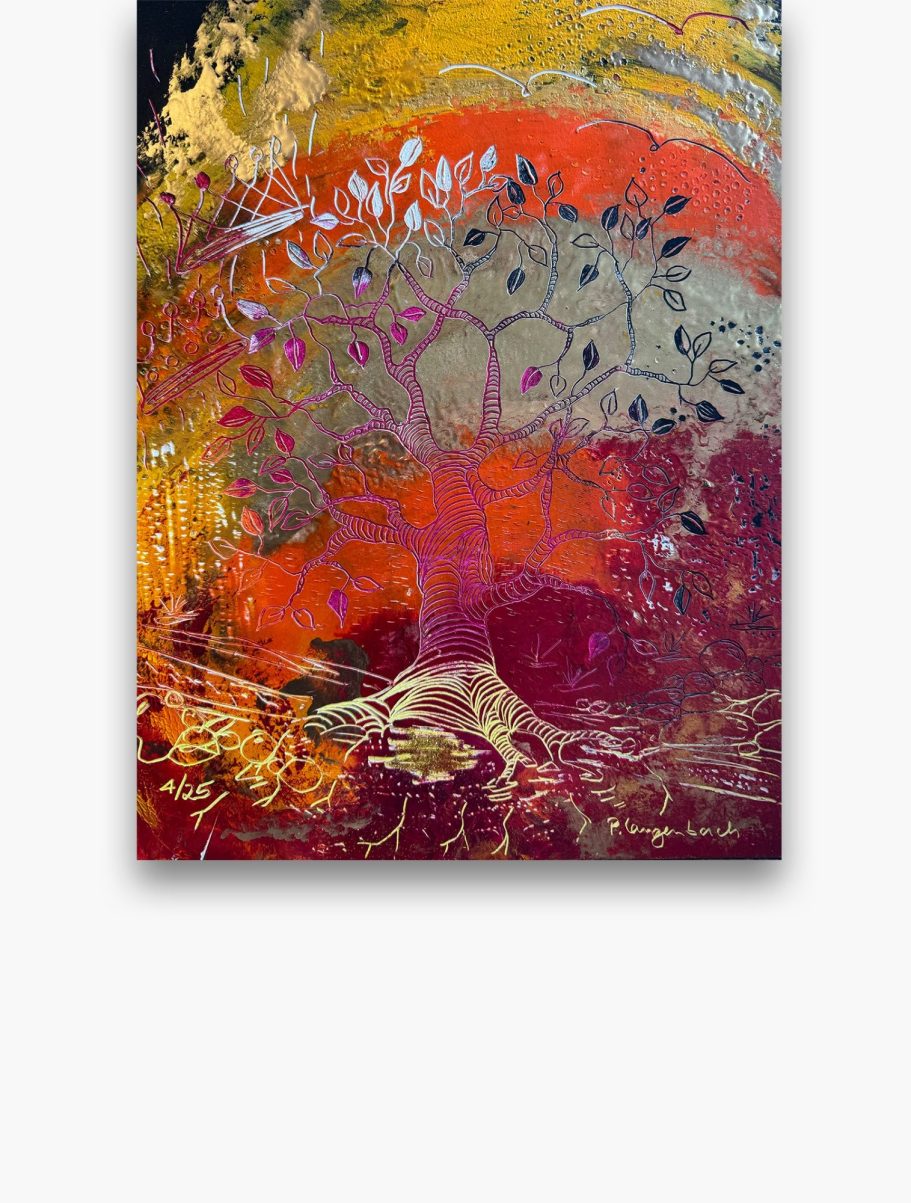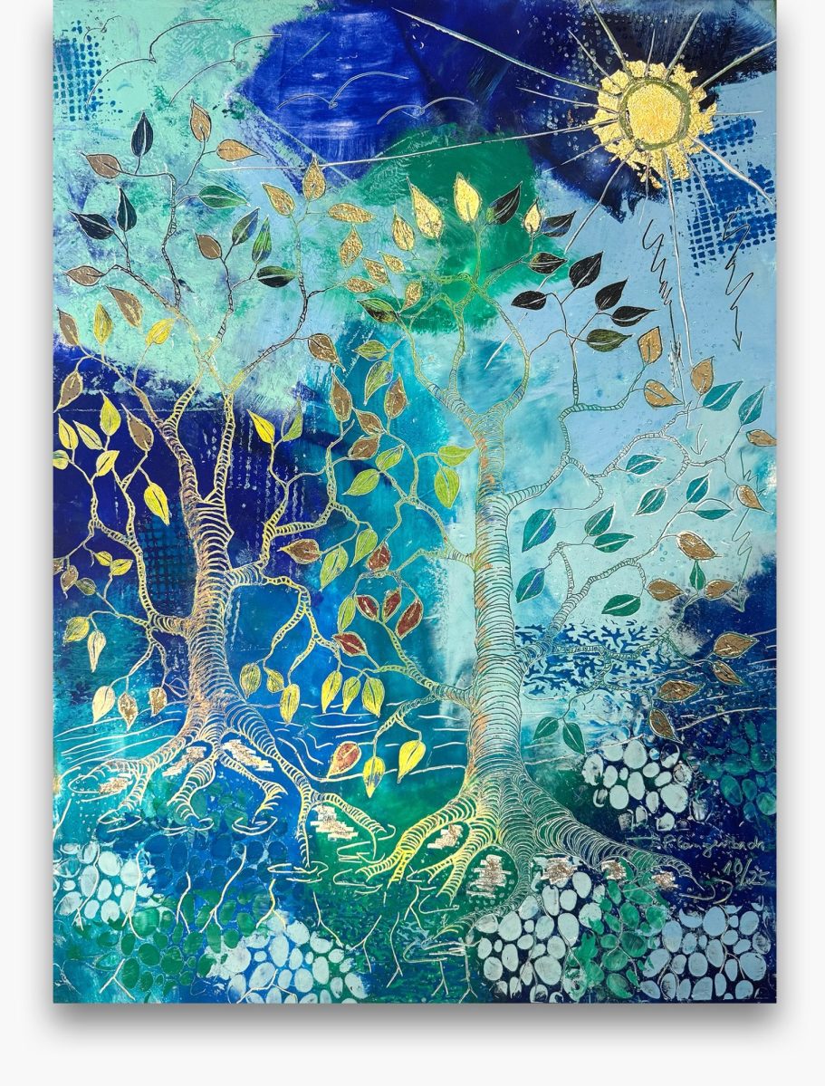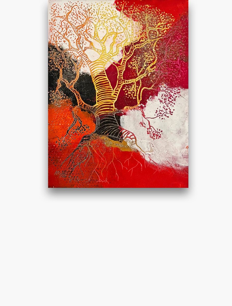Jedes meiner Baumbilder ist ein Unikat: Die Schichten aus Ölfarbe, vermischt mit Baumharz und Bienenwachs verschmelzen zu lebendigen Baumwesen. In ihren Wurzeln verbergen sich Schätze, die Geschichten von Heilung, Hoffnung und innerer Kraft erzählen. Hier finden Sie Kunstwerke für Orte der Stille, Räume der Begegnung oder Bereiche, die durch einen strahlenden visuellen Akzent gewinnen.