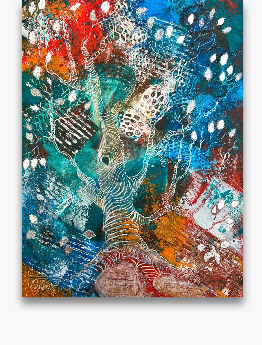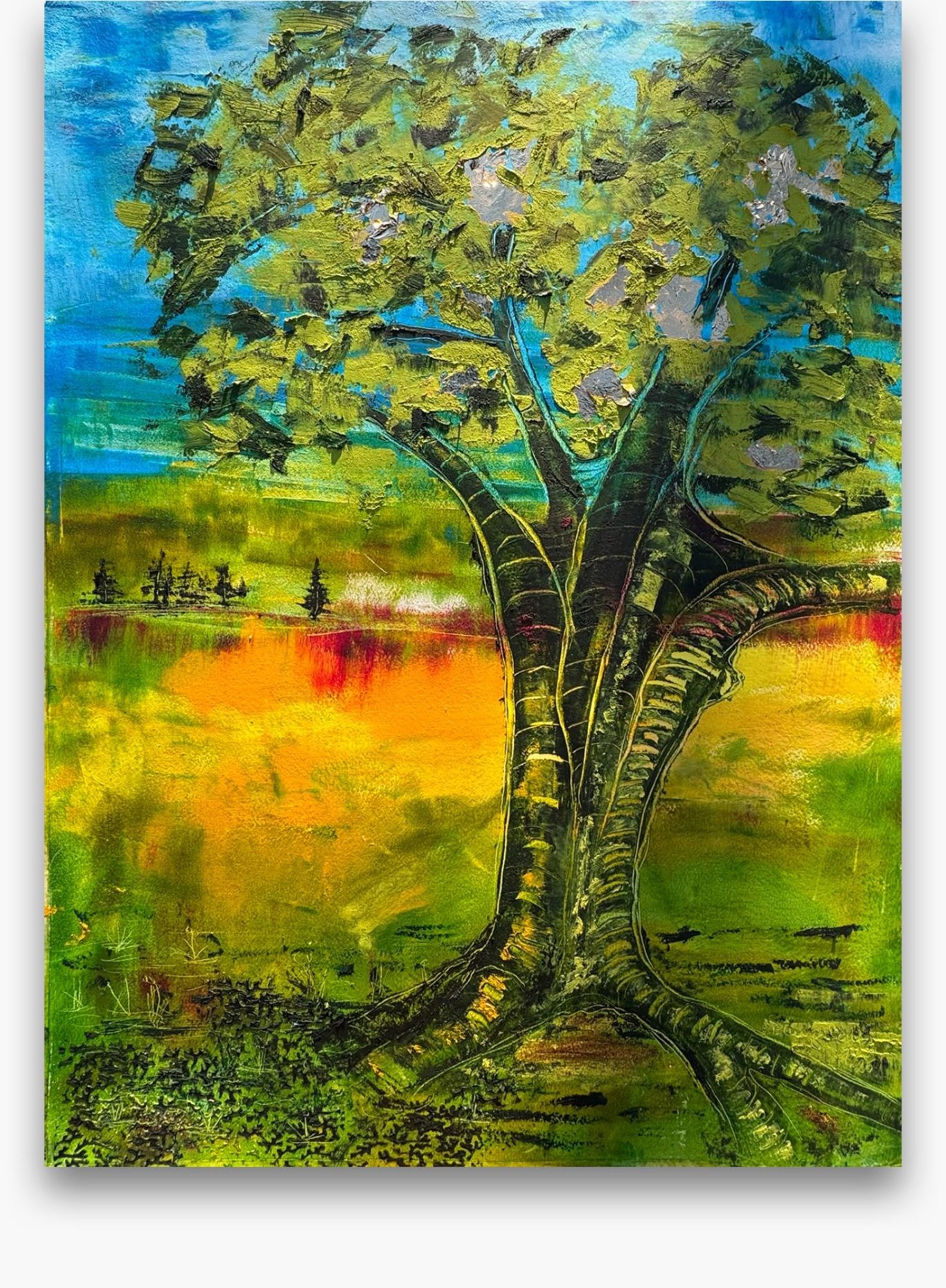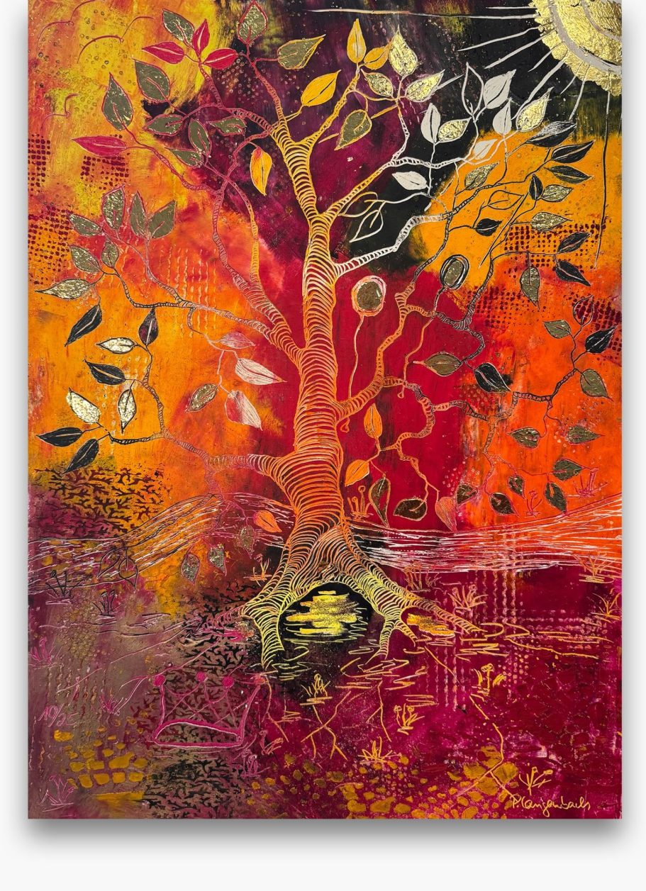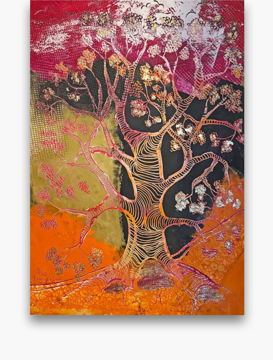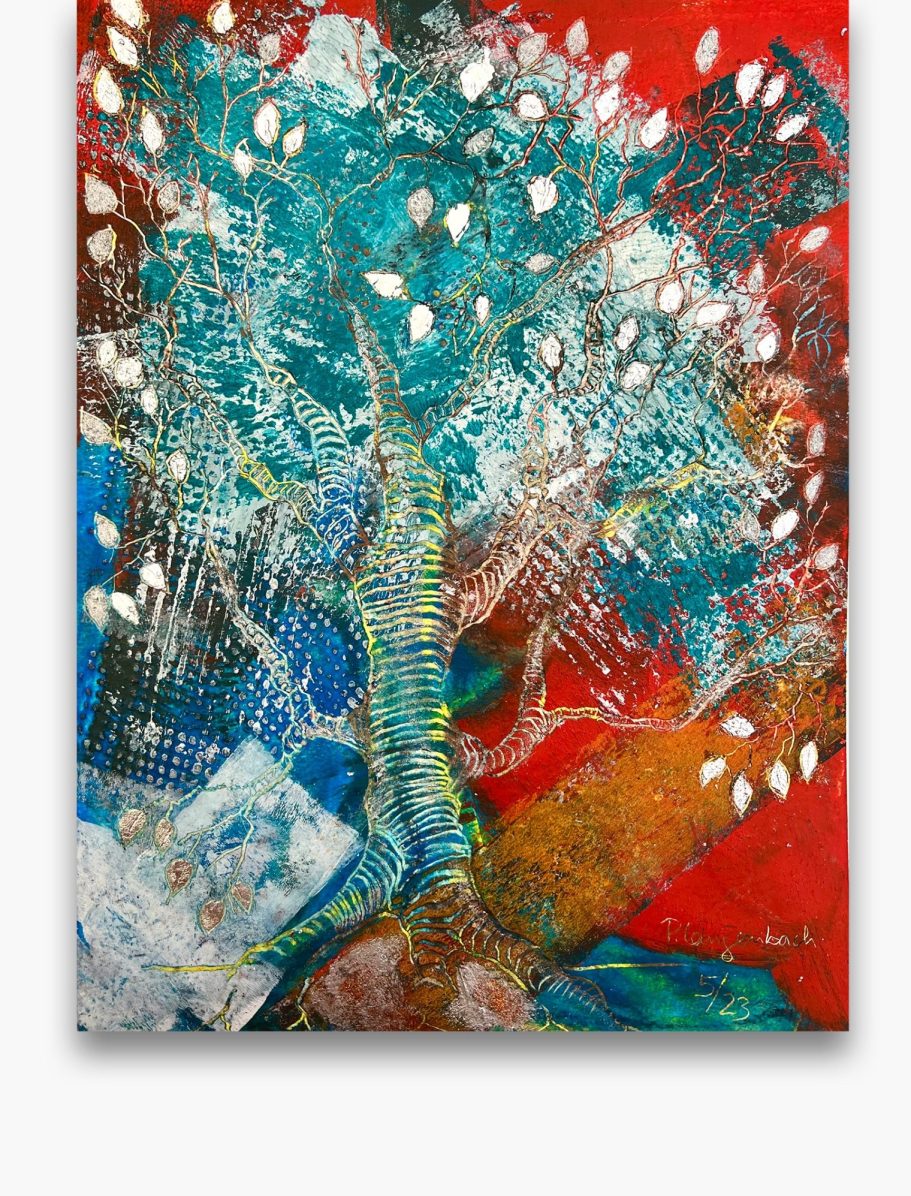 Jedes meiner Baumbilder ist ein Unikat: Die Schichten aus Ölfarbe, vermischt mit Baumharz und Bienenwachs verschmelzen zu lebendigen Baumwesen. In ihren Wurzeln verbergen sich Schätze, die Geschichten von Heilung, Hoffnung und innerer Kraft erzählen. Hier finden Sie Kunstwerke für Orte der Stille, Räume der Begegnung oder Bereiche, die durch einen strahlenden visuellen Akzent gewinnen.