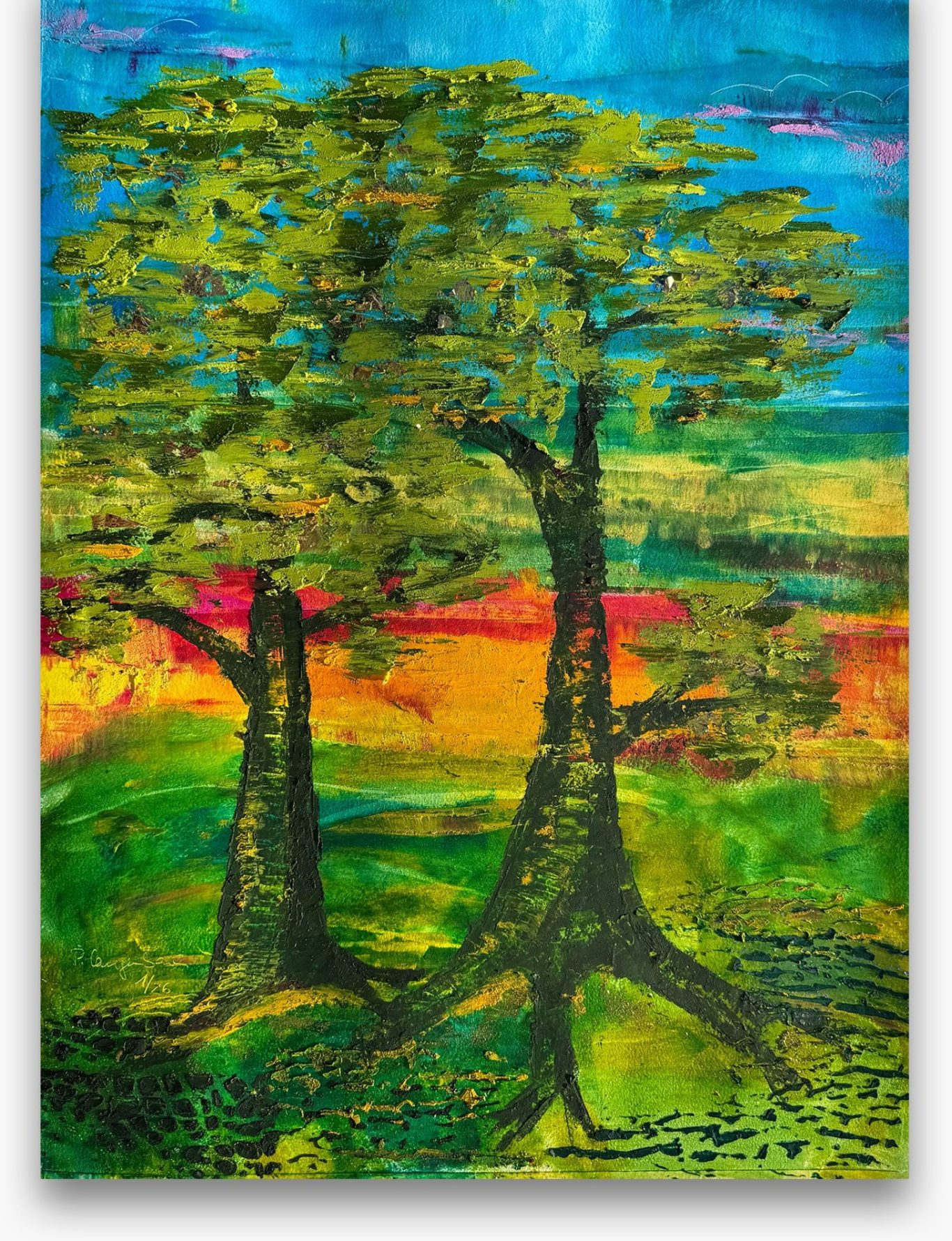 „Ich bin sehr froh, die Entscheidung getroffen zu haben, zwei Deiner Gemälde auszusuchen, um sie nun jeden Tag anschauen zu können. Sie tun mir sehr gut. Jeden Morgen begrüßen sie mich als erstes und ich sehe immer noch mehr darin. Es ist einfach schön, sich in Gedanken und Bildern treiben zu lassen. Darin liegt Weiteres verborgen mit seinem hohen Wert! An den Bäumen erkennt man die Spuren des Lebens und der Zeit. Sie sind unsere Freunde. Es ist wunderbar, sie in Bildern zu ehren.“